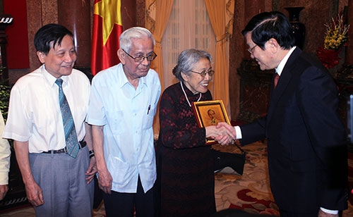 ![]() El presidente Truong Tan Sang entrega presentes a los venerables periodistas con grandes portes a la prensa revolucionaria y al país