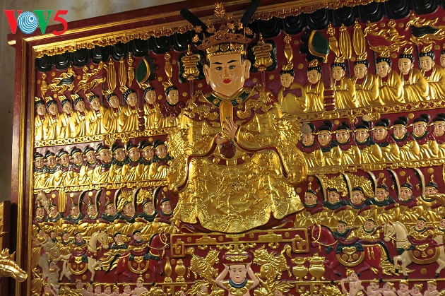 El templo Noi (interior), que es el de Lac Long Quan, contiene varios edictos reales, estelas de piedra, campanas de cobre, pareados antitéticos y objetos de culto que datan de las dinastías Ly y Le Posterior. Pero la pieza clave es una pintura escultórica que muestra la imagen del rey Lac Long Quan durante una carrera de buques, rodeado por sus mandarines. Esta preciosa obra fue reconocida en 2015 como tesoro nacional por el primer ministro. Bui Dang Thinh, explicó lo siguiente: “Este cuadro grabado en relieve sobre madera de “vang tam” fue creado bajo la dinastía Dinh hace mil años. En él observamos varios niveles: el más alto con 18 damas levantando una caja de peticiones para el rey, el segundo con 20 mandarines y el tercero con 16 generales. En el medio está la imagen de Lac Long Quan viendo una regata mientras que en el frente del cuadro se encuentran los competidores cruzando el río con los barcos. También, hay soldados que protegen a Lac Long Quan, además de elefantes y un par de tigres blancos”.