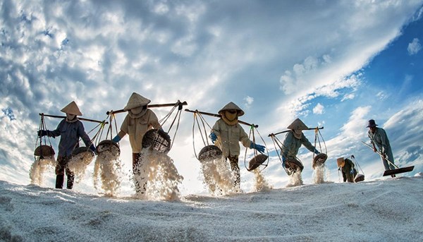 Se trata de una labor muy dura, sobre todo porque hay que hacerla con la mano y bajo un sol abrasador. Más aún, la mayoría de los trabajadores allí son mujeres, quienes obtienen la sal de una forma totalmente artesanal. Una de ellas es Pham Thi Vang, que nos explica al respecto. “Para obtener sal a partir del agua de mar, primero debe recogerse agua salada y colocarla en arroyos y embalses. A continuación, necesitamos exponerla al sol y utilizar el proceso natural de evaporación.”
