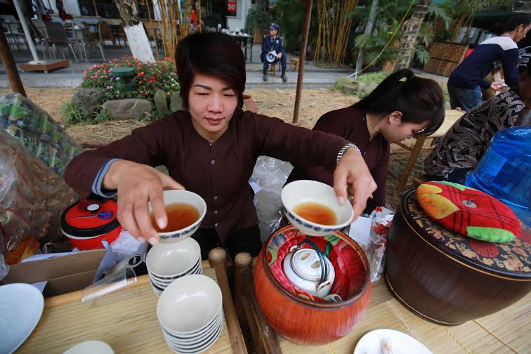 ![]() El punto más destacado de este Festival son escenarios que reaviven espacios culturales de las zonas campestres de Vietnam. En el corazón de la urbanización, al lado de las calles decoradas con flores multicolores, se reproducen espacios muy típicos de las aldeas vietnamitas, con estanque de flores de loto con rústicos instrumentos para capturar peces, canal con puentes precarios, caminos rurales con carruajes de remolque y tenderetes de té…