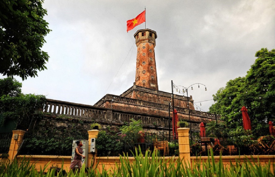 La bandera nacional ondea en la Torre de Bandera en Hanói, el 2 de septiembre de 2021. (Foto: VNA) |