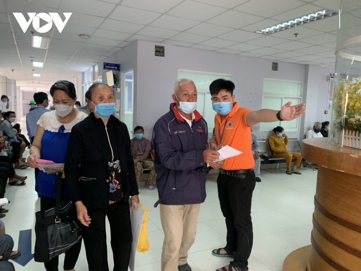 Un trabajador del hospital guía a los pacientes a realizar los exámenes médicos. (Foto: VOV) |