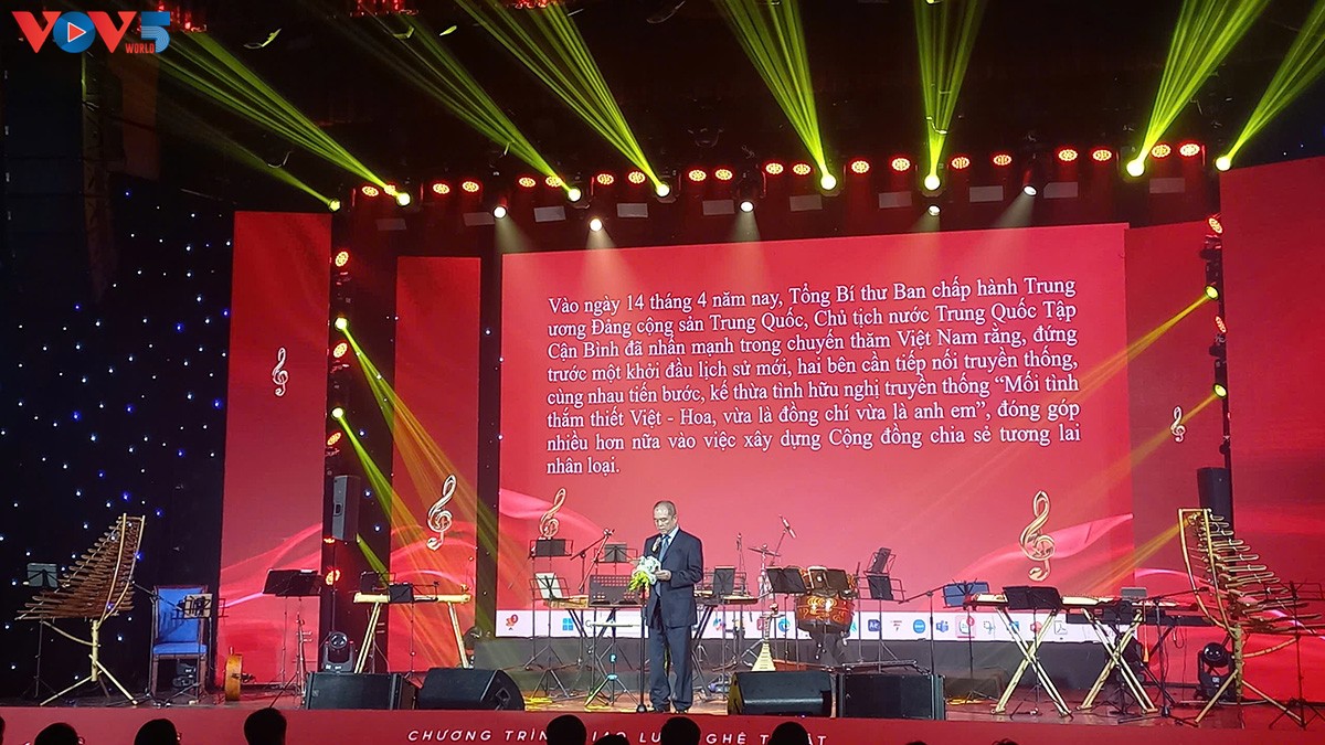 El programa incluyó 12 actuaciones cuidadosamente preparadas, interpretadas por artistas de ambos países. Entre ellas, destacaron títulos como “Coro Vietnam - China, Brisa primaveral de diez millas”, “Luz de luna sobre el lago de los lotos”, “Canción de la juventud Vietnam – China” y “Hanói, “doce estaciones floridas”. Las piezas, impregnadas de las respectivas identidades culturales, rindieron homenaje a la amistad entrañable entre Vietnam y China.
