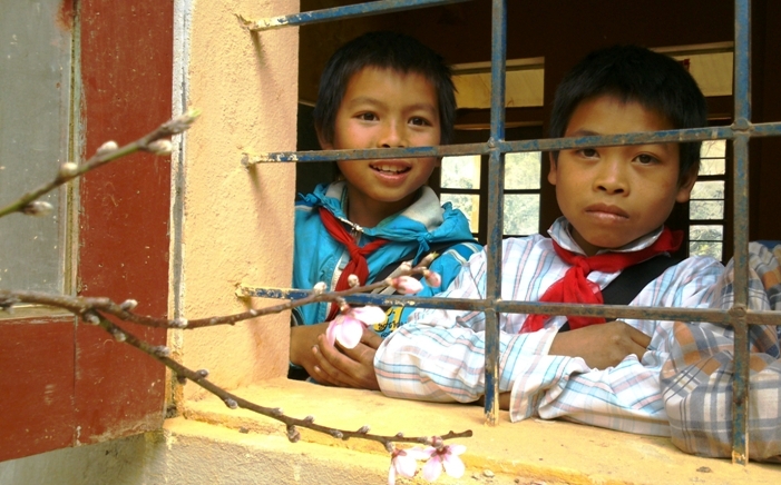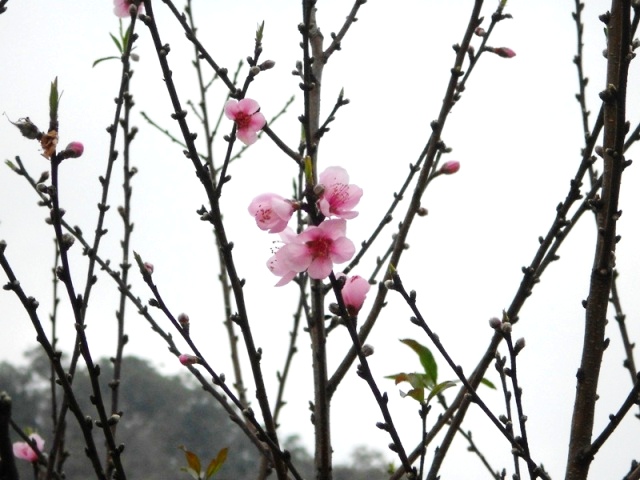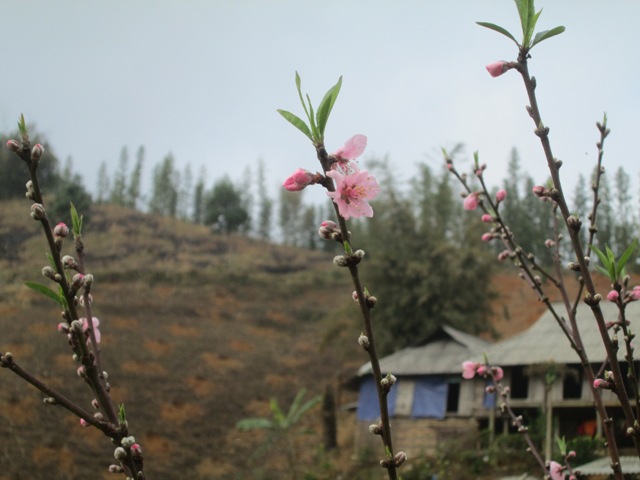 En la población de Cao Sơn, casi todas las familias poseen decenas de melocotoneros, los cuales florecen ya en pleno ambiente del Tet desafiando el frio invernal.