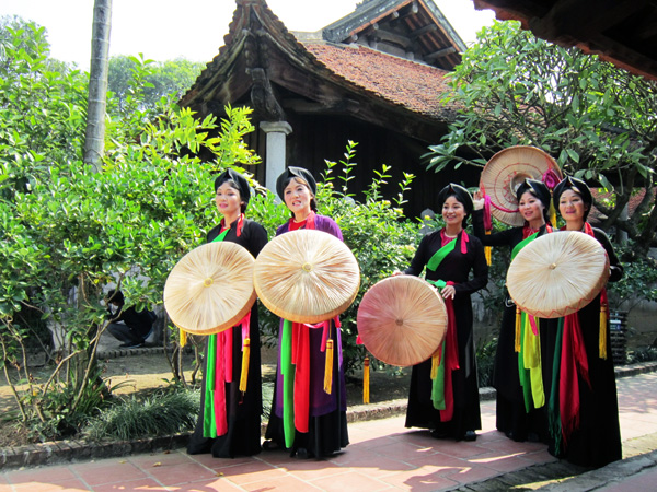 Artistas de "Quan họ" (copla folclórica) en la pagoda Dâu, una de las obras más antiguas de Luy Lâu, centro político, económico, comercial, cultural y religioso importante de Giao Châu (hoy la región norteña de Vietnam) |