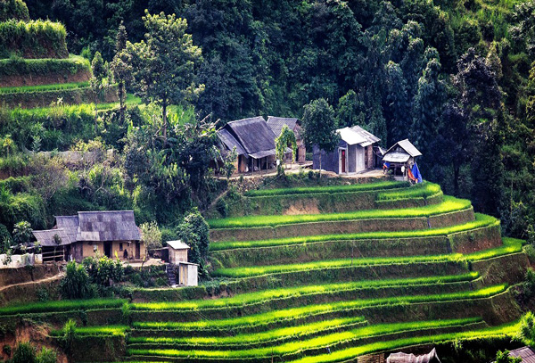 ![]() Casas en arrozales de la escalera en la región septentrional de Vietnam