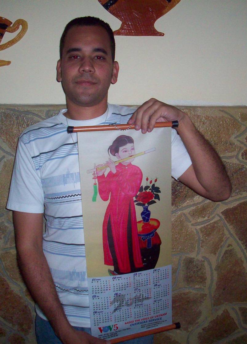 El oyente cubano Dargel Hubert Tamayo con el obsequio de la Voz de Vietnam