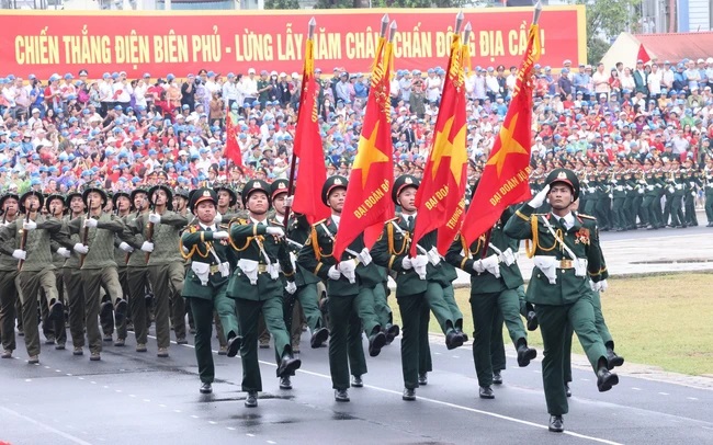 Desfile cívico-militar en la celebración de 70 años de la victoria de Dien Bien Phu. (Foto: VTV) |