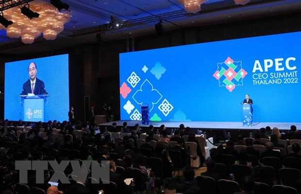 El presidente de Vietnam, Nguyen Xuan Phuc, interviene en la Cumbre de Negocios del Foro de Cooperación Económica Asia-Pacífico (APEC) 2022. (Foto: VNA) |
