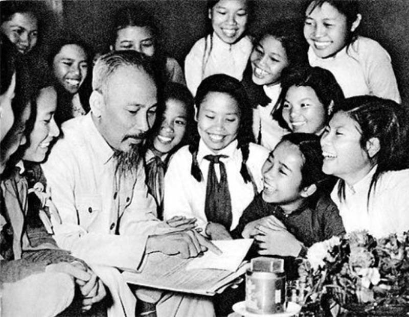 El presidente Ho Chi Minh y los alumnos sobresalientes de Vietnam |