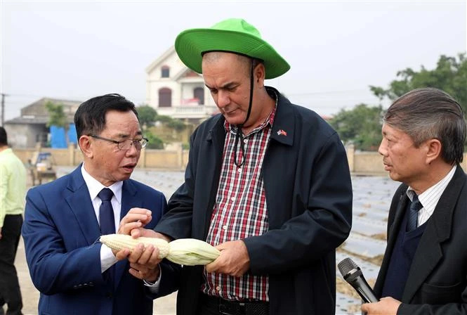 El ministro del Ministerio de Agricultura de Cuba, Ydael Jesús Pérez Brito, visita el Instituto de Investigación de Cultivos de la empresa Thai Binh Seed. (Foto: VNA) |