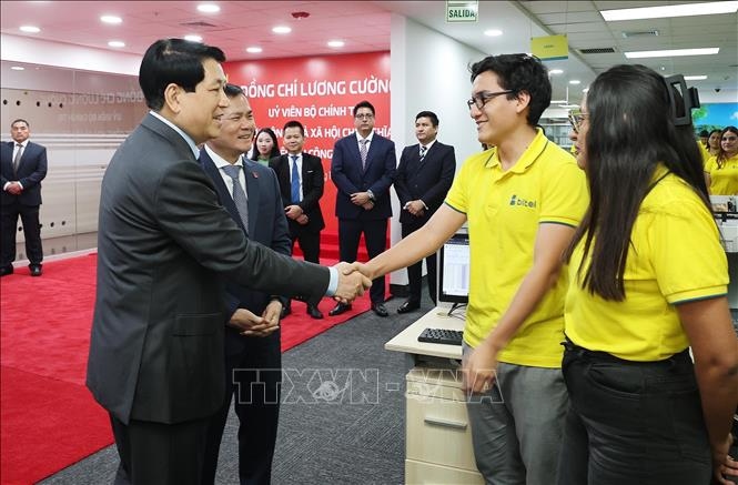 El presidente de Vietnam, Luong Cuong, visita y sostiene un encuentro de trabajo con la empresa Viettel Perú. (Foto: VNA) |