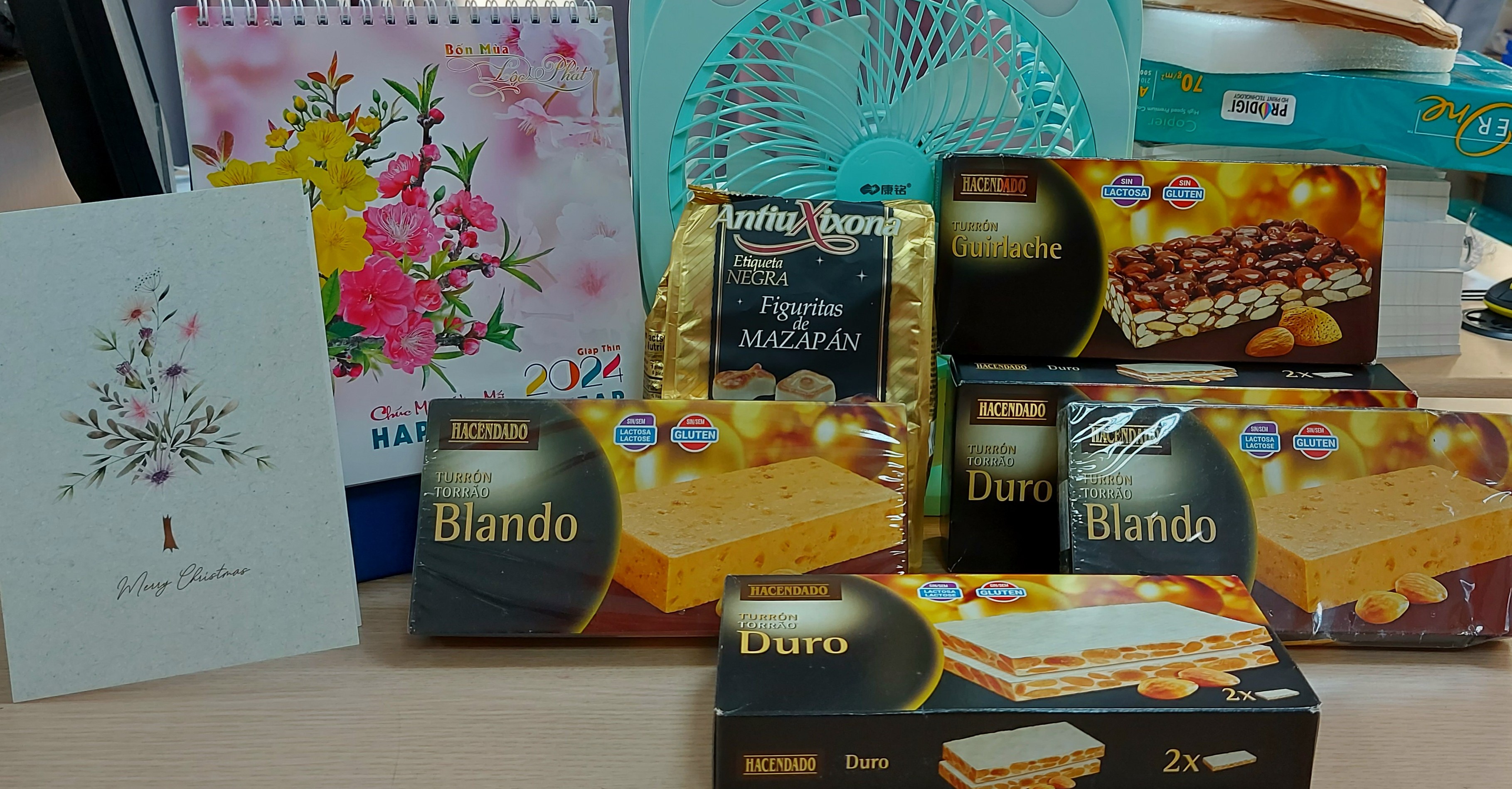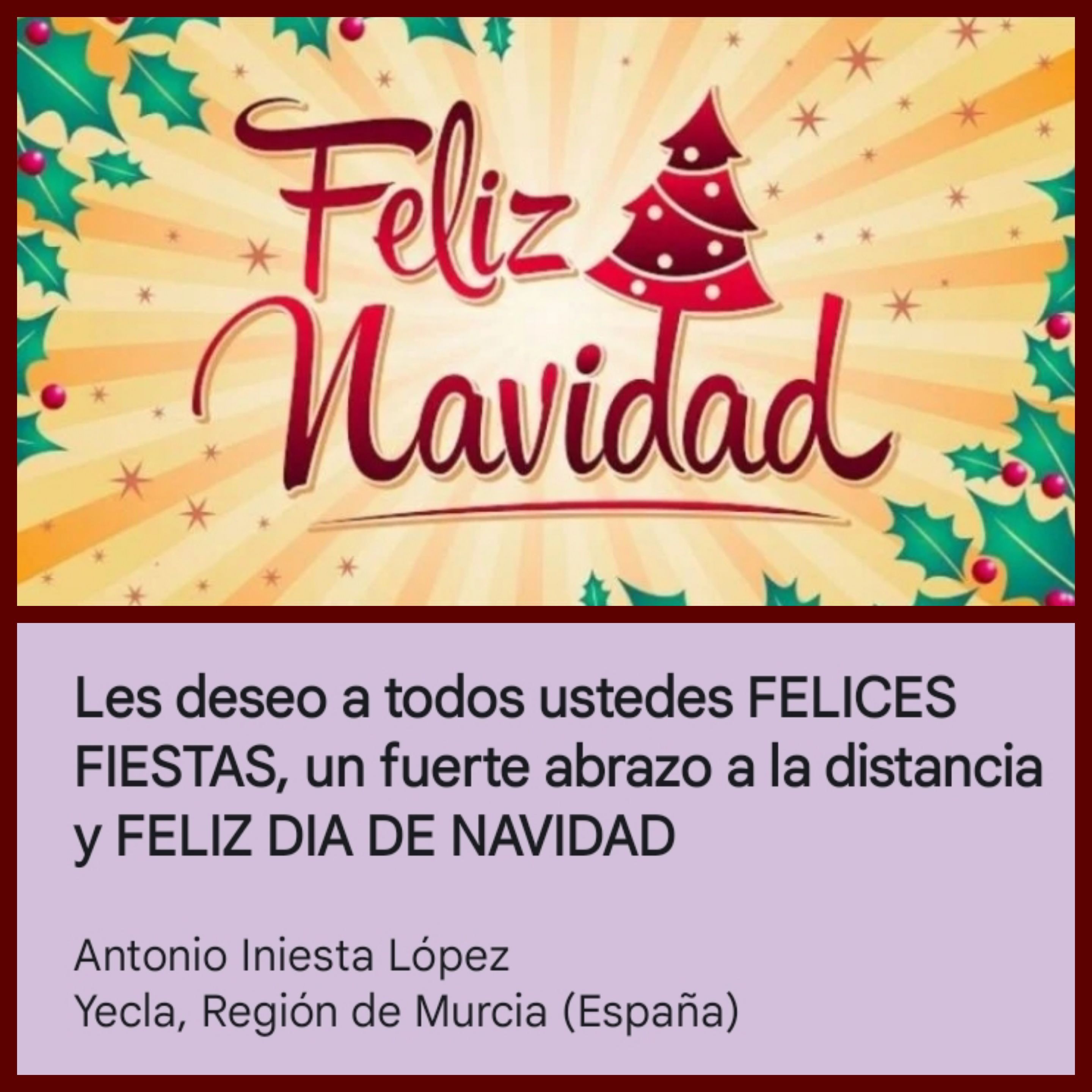 ¡Hay muchos otros deseos y mensajes de amor que nos hacen sentir tan felices! Especialmente, recibimos un paquete enviado desde Bilbao, con una linda postal y varios tipos de turrones tradicionales de España para la Navidad. Son regalos muy especiales que José Ignacio Cos Lezama nos envía como es habitual cada temporada de Navidad y fin de año desde hace tiempo. Tanto cariño y amor empaquetados en esa caja, por los que estamos profundamente agradecidos, José. Esperamos que usted y su esposa Liliane hayan pasado una feliz Navidad en unión de sus familiares y amigos.