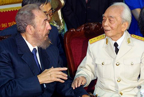 ![]() El líder de la Revolución cubana, Fidel Castro (i) y el gran estratega militar de Vietnam, Vo Nguyen Giap