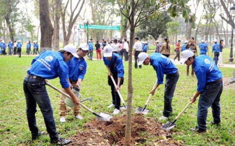 Jóvenes voluntarios participan en el Festival de Siembra de Árboles 2020 en Hanói. (Foto: baodansinh.vn) |
