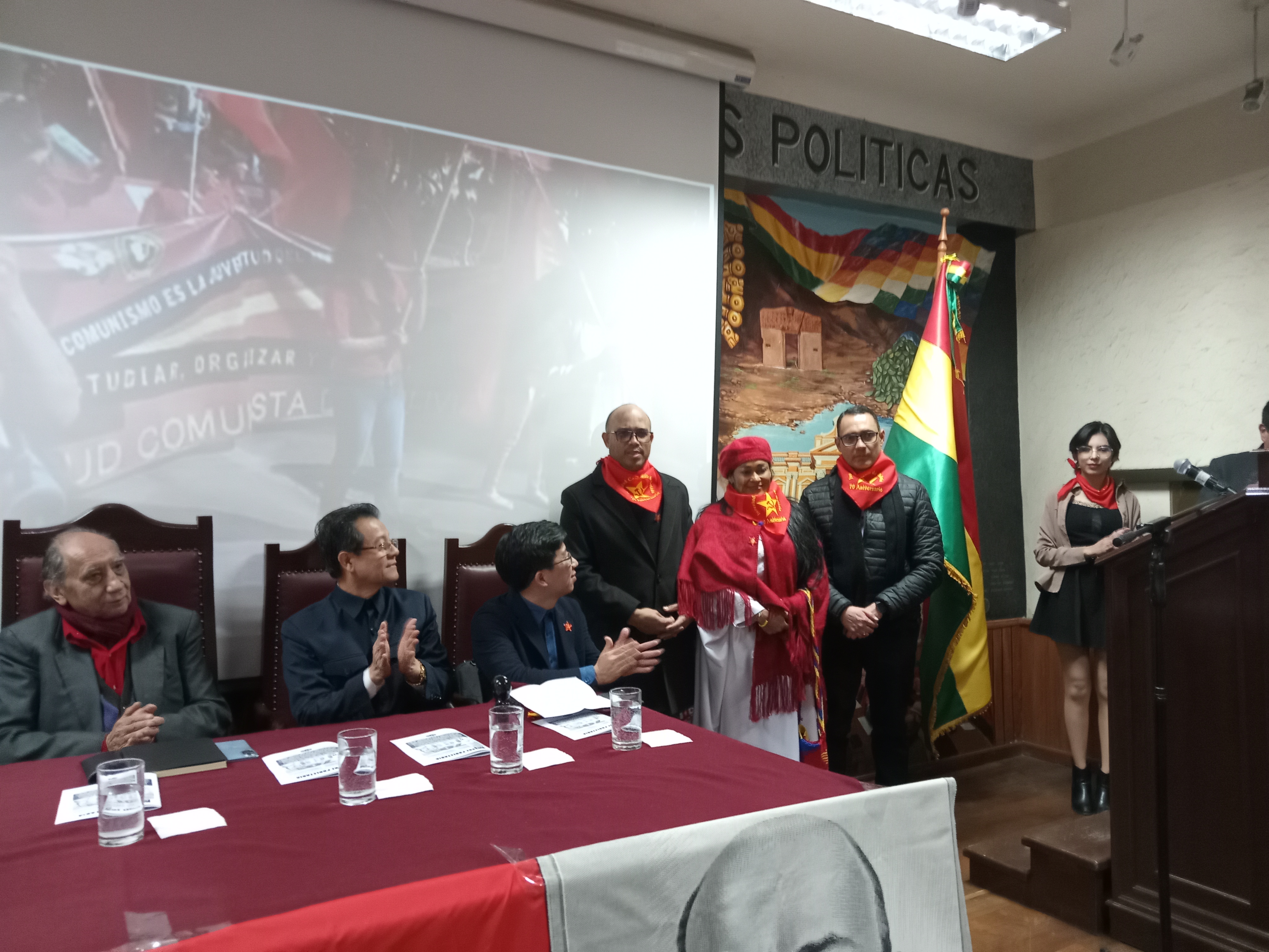 Margarita: Mario Muñoz Mendoza de Bolivia nos envió fotos del 70 aniversario de la Juventud Comunista de Bolivia (JCB). La ceremonia conmemorativa contó con la presencia de una delegación del Partido Comunista de Vietnam, encabezado por el miembro de su Comité Central Le Hong Quang, asimismo con la presencia de la Embajadora de Colombia en el Estado Plurinacional de Bolivia, Elizabeth García, junto con representantes de Cuba y Venezuela. El oyente también mostró su interés en noticias sobre la conmemoración de la primera visita de Ho Chi Minh a la Unión Soviética y comentó: “El gran presidente Ho Chi Minh, aprendió de Vladimir Lenin, en cuanto a los temas nacionales y coloniales. Por otra parte, el Partido Comunista de Vietnam, aprendió a administrar el Estado y desde el primer momento en que tomó el poder, superó con creces las vicisitudes de los años 90, para el 2000, mostró el desarrollo de sus fuerzas productivas en la agricultura y hoy está en proceso de industrialización en otros campos como la industria automotriz, etc”.