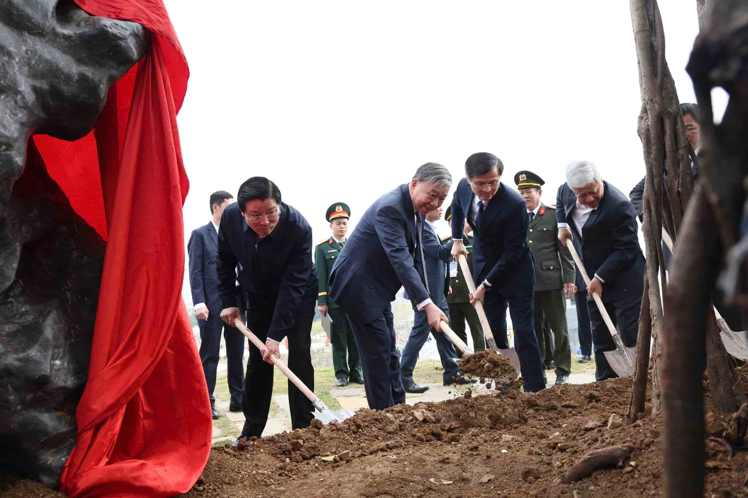El secretario general del Partido Comunista de Vietnam, To Lam, participa en la plantación de árboles del Tet en la plaza Dinh Tien Hoang en ciudad de Hoa Lu, en la antigua provincia de Ninh Binh. (Foto: laodong.vn) |