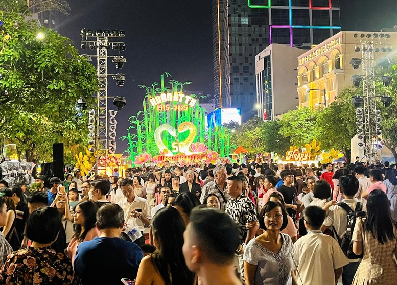 La calle de flores de Nguyen Hue, en Ciudad Ho Chi Minh, es uno de los sitios más concurridos de la metrópoli survietnamita durante las vacaciones del Tet. (Foto: VGP) |
