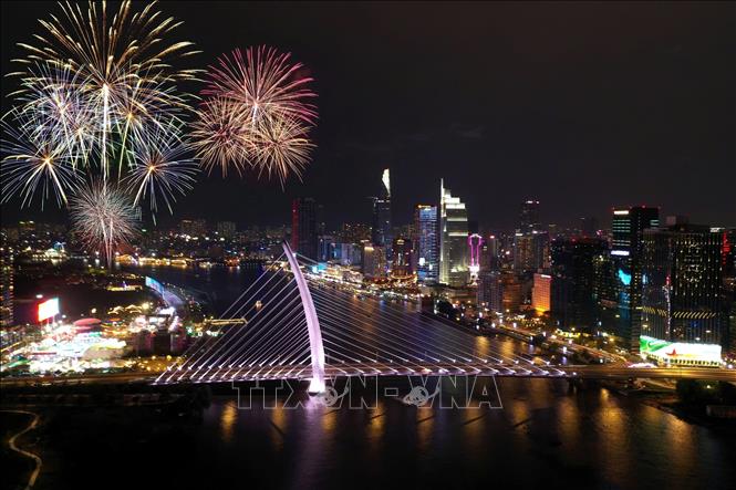 Un espectaculo pirotecnico en Ciudad Ho Chi Minh para celebrar el Año Nuevo Lunar 2025 en la Nochevieja. (Foto: VNA) |