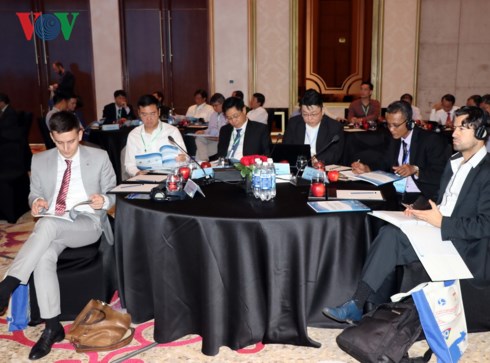 Delegados vietnamitas y extranjeros en una jornada de debates |