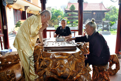 ![]() Pham Van Tuyen (i) juega al ajedrez chino con su compañero en casa