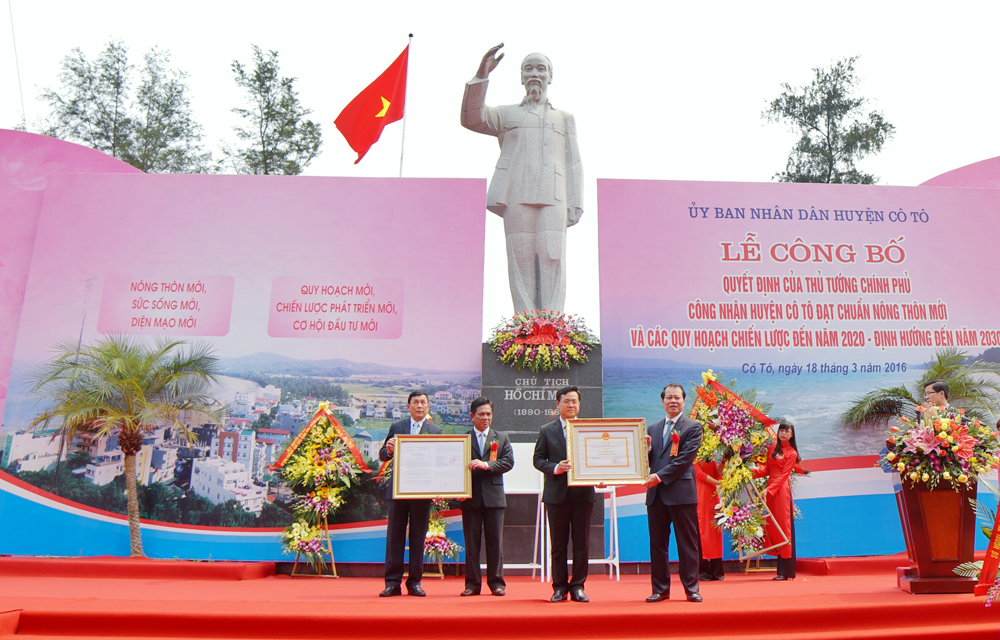 ![]() El ex vice primer ministro Vu Van Ninh entrega el reconocimiento del título "Nuevo Campo" a de Co To