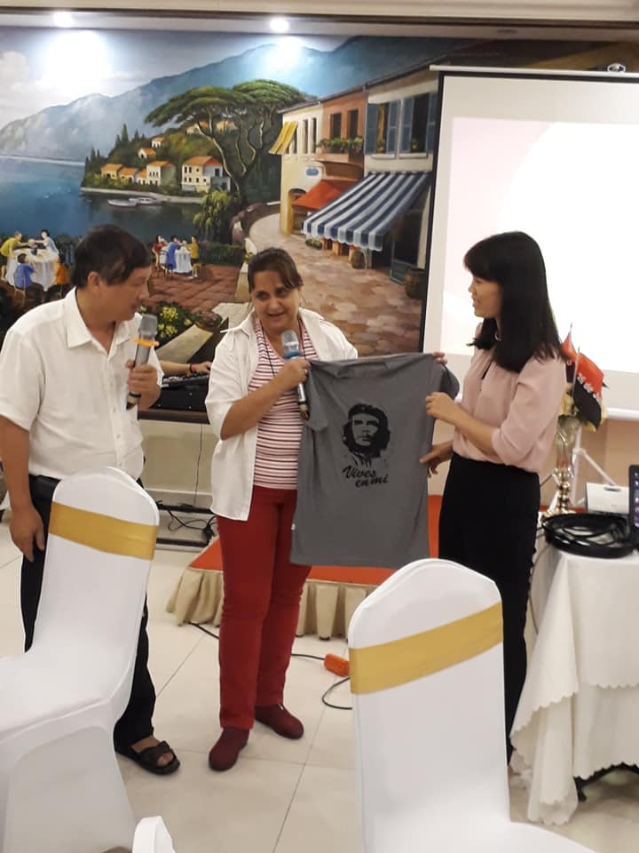 La Segunda jefa de la Misión cubana en Vietnam entrega presente a la Unión de Organizaciones de Amistad de Vietnam en la provincia de Hai Duong. |
