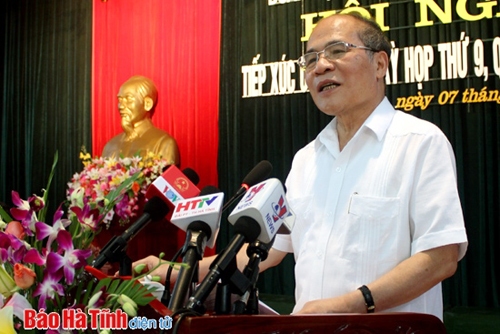 En el encuentro, Nguyen Sinh Hung agradeció los aportes de los electores al desarrollo tanto local como nacional. En cuanto a las actividades legislativas, destacó los esfuerzos del Parlamento en la legislación, especialmente el perfeccionamiento jurídico en favor de los derechos humanos y el desarrollo económico. Sobre la situación en el Mar Oriental, el presidente del Legislativo reafirmó el criterio nacional de mantener la cooperación, amistad y solidaridad con el resto del mundo, aprovechando el apoyo internacional y al mismo tiempo insistiendo en la defensa de la soberanía e integridad territorial de la Patria.