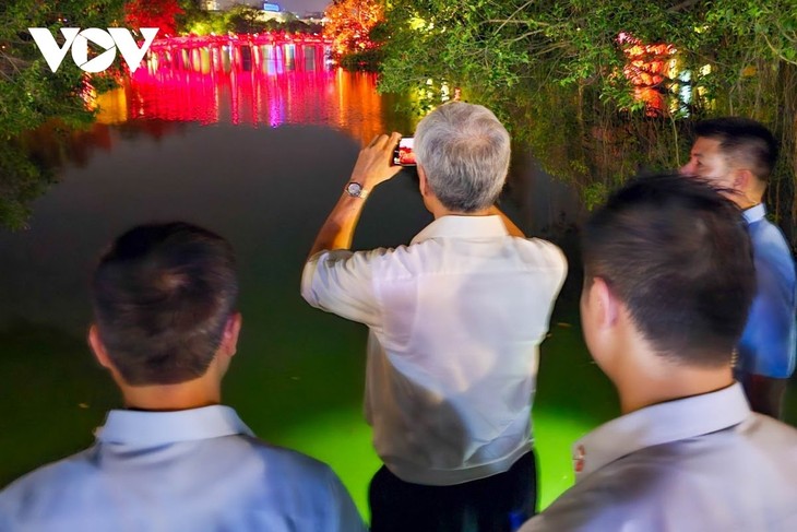 Ambos dirigentes pasaron revista a la guardia de honor y, después de la ceremonia de bienvenida, mantuvieron conversaciones. En la reunión el primer ministro de Vietnam, Pham Minh Chinh, solicitó a Singapur que ayudara a su país a construir y operar un gran centro de bases de datos para elevar la eficiencia en la lucha contra el crimen, especialmente los delitos de alta tecnología. También pidió el apoyo a la promoción de la conexión del sistema de Vietnam con el sistema de identificación y autenticación electrónica de Singapur. Esto último busca gestionar a los ciudadanos entre los dos países durante los viajes, la vida y el trabajo.