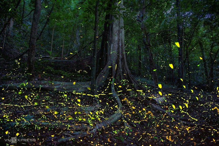 | “Las estrellas voladoras” iluminan parte del bosque. (Foto: Nguyen Huy Thong / vnexpress) |