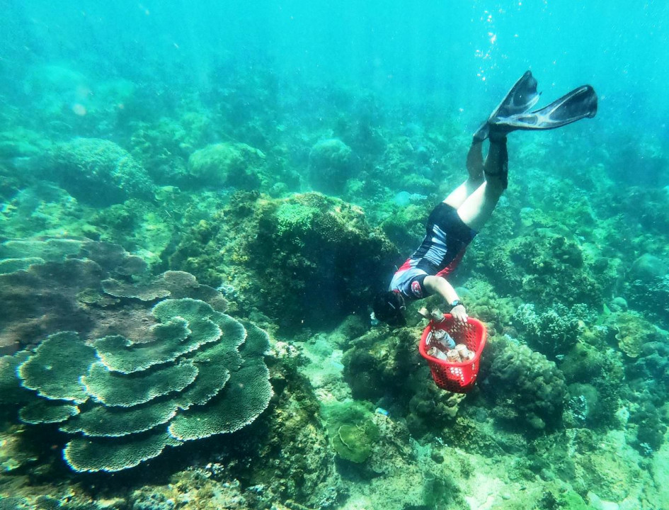 El activista trabaja incluso en el fondo del mar. Perfectamente capaz de ello, pues es entrenador de deportes acuáticos, Trung bucea al menos una hora por semana para recoger basura en las cercanías de las costas y salvar los bancos de coral dañados por los residuos. Allí ha encontrado botellas de plástico que llevan más de 20 años dañando al ecosistema.