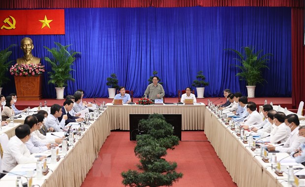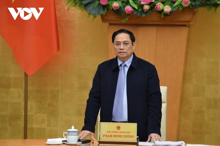 El primer ministro Pham Minh Chinh habla en la reunión. |