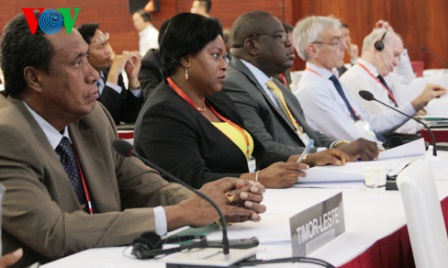 De hecho, durante las cinco jornadas de trabajo, “Objetivos del desarrollo sostenible: Transformar palabras en acción”, tema propuesto por el país anfitrión centró la agenda de todas las sesiones de debates. El desarrollo sostenible es ambición de todas las naciones, pero cada país no puede prosperar si no resuelve los problemas de la pobreza, el crecimiento demográfico y el agotamiento de los recursos naturales, la contaminación del medio ambiente y las amenazas a la biodiversidad. Además, el mundo no puede lograr un verdadero desarrollo sostenible sin tener paz, igualdad entre las naciones y el respeto por el Derecho Internacional. Esto también se confirma en la Declaración de Hanoi. Hans Franken, diputado holandés, dijo: “Es importante a la autodeterminación de cada nación, si se deja, ya sería una violación de los derechos humanos. De hecho, en muchos lugares hemos sido testigos de víctimas de violaciones de derechos humanos, que son incapaces de decidir sobre su futuro. Creo que el Derecho Internacional es una base importante, para resolver las disputas territoriales. Por lo tanto, los países deben respetar y cumplir con los convenios internacionales.”