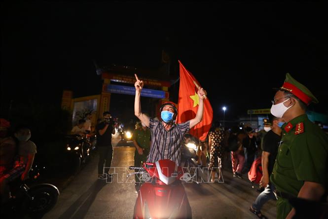 El levantamiento de la orden de cuarentena de la aldea de Ha Loi en el distrito de Me Linh, de la ciudad de Hanói después de no encontrar ningún casos nuevos de infección con el Covid-19 (Foto: VNA) |
