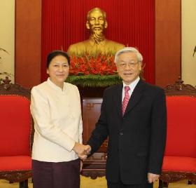 La visitante afirmó que el Partido, el Gobierno, el Parlamento y el pueblo laosianos harán sus máximos esfuerzos para mantener y fortalecer la solidaridad y la amistad especial entre los dos países. Informó al líder partidista vietnamita sobre la actual situación de Laos, el resultado de la cooperación legislativa bilateral, así como la organización exitosa de la concluida Conferencia al respecto, apuntando a estrechar la coordinación entre los dos órganos en el despliegue de los acuerdos firmados. El máximo dirigente partidista anfitrión, Nguyen Phu Trong abogó porque ambas naciones continúen intercambiando informaciones y experiencias, y ayudándose mutuamente en la realización del Año de Solidaridad y Amistad bilateral 2012 para profundizar y ampliar sus relaciones tradicionales, de solidaridad especial y cooperación integral.