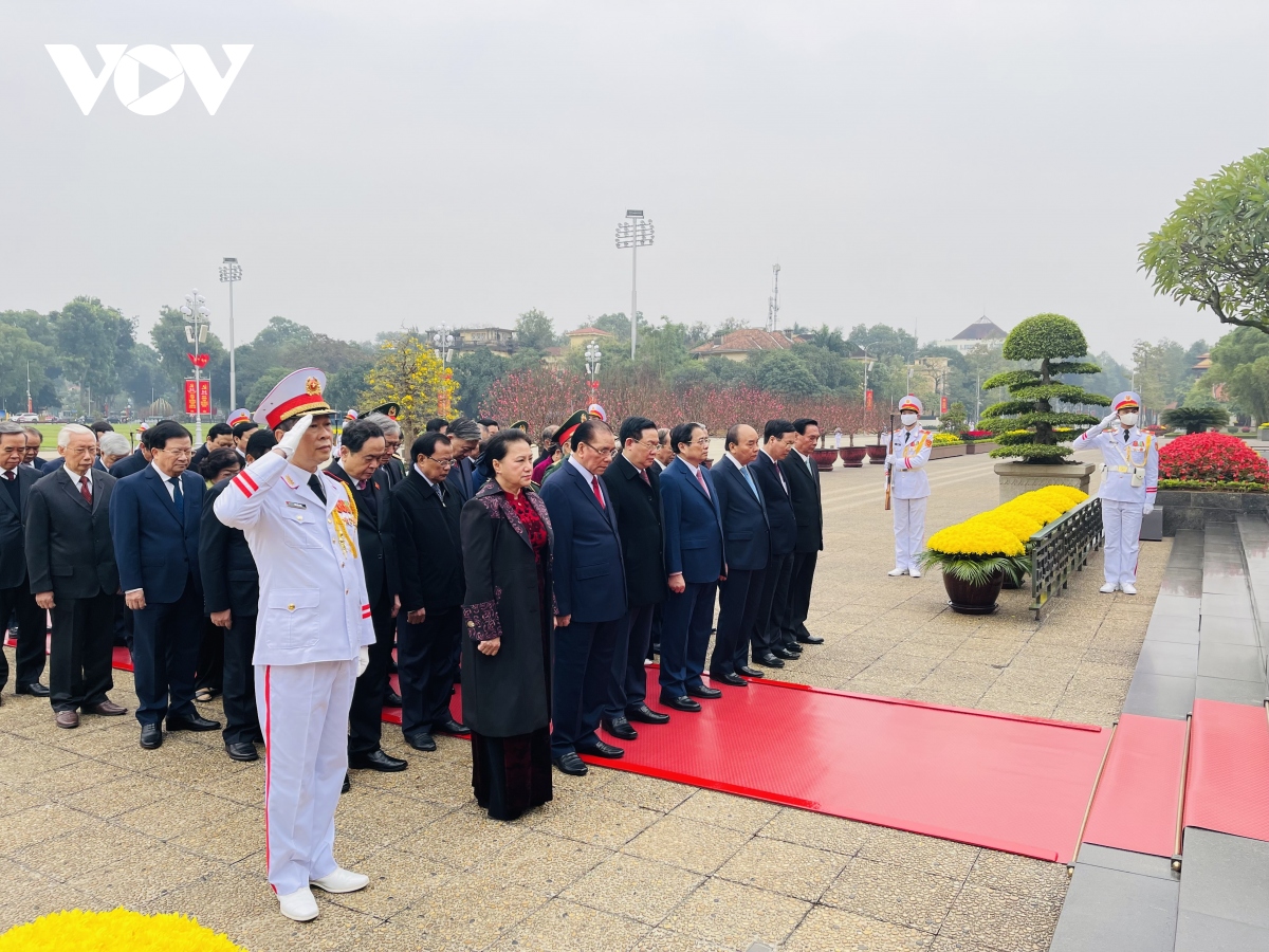 Dirigentes del Partido y Estado rinden homenaje al presidente Ho Chi Minh. |