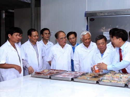 ![]() El presidente del Parlamento vietnamita, Nguyen Sinh Hung visita la fábrica de procesamiento de alimentos Mitraco en la cabecera Ky Anh