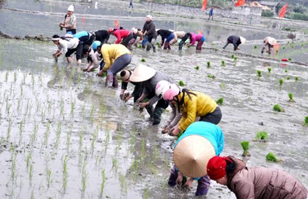 ![]() Campesinos de la comuna Dong Ha cultivan arroz en el invierno