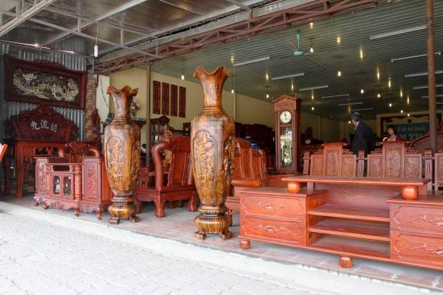 Existen pocos pueblecitos donde todos sus habitantes, desde los ancianos hasta los niños, participan en la fabricación de muebles maderables de bellas artes. Los lugareños consideran que el talento profesional fluye en su sangre y se transmitió de generación en generación. Nguyen Van Son, artesano menor de 20 años que practica este oficio desde hace más de l0 años, compartió: “Cuando era pequeño, después de regresar de la escuela pulí y barnicé maderas. Posteriormente mi padre me enseñó la carpintería. A los l5 o l6 años me instruyó en el grabado de diseños simples y complicados. Ahora, puedo hacer varios productos”. El carpintero continuó: “En este oficio, el cincelado y la pintura son más importantes. El brillo y acabado de los productos dependen del nivel profesional del pintor, por ello su ingreso también es más alto que el de otros ebanistas. Gano 200 mil dong al día”.