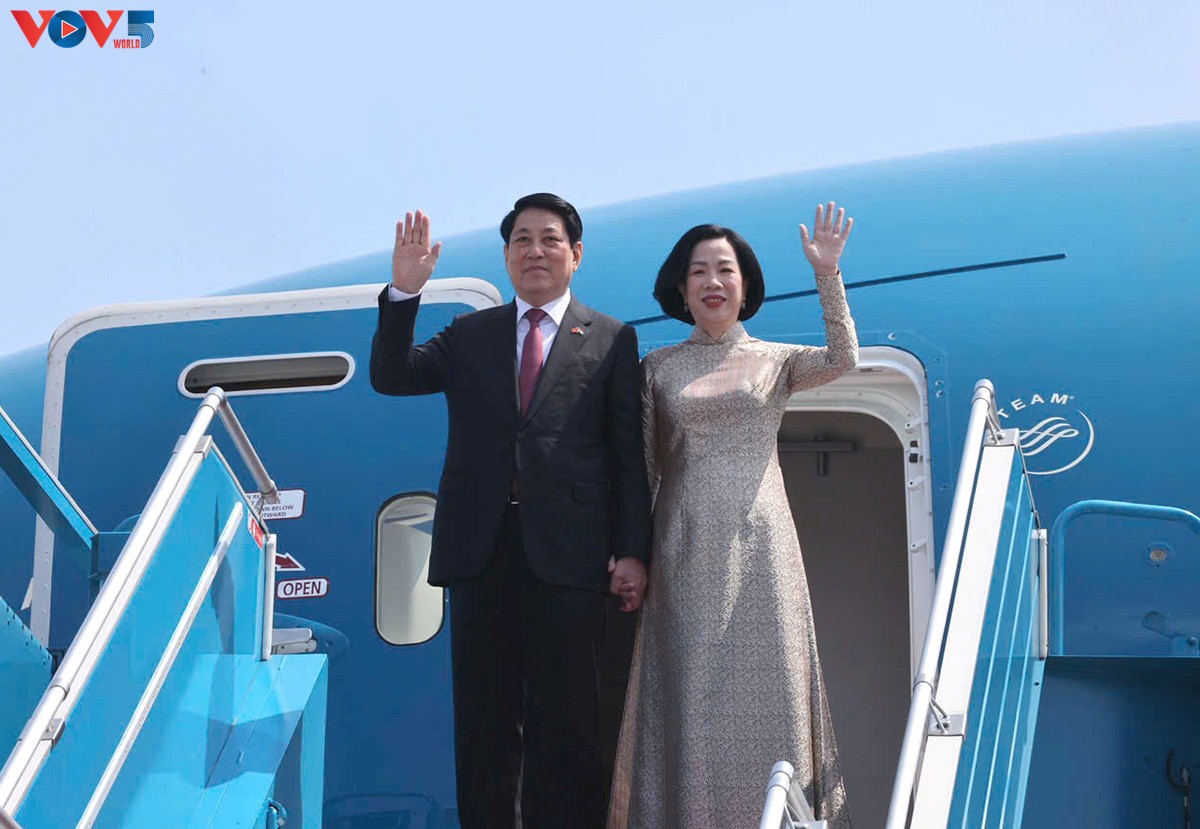 El presidente de Vietnam Luong Cuong y su esposa llegan a Luanda, iniciando su visita de Estado a la República de Angola. (Foto: VOV) |
