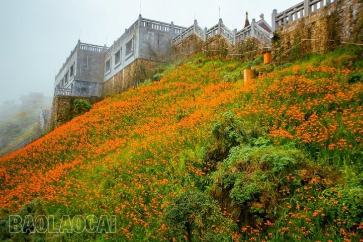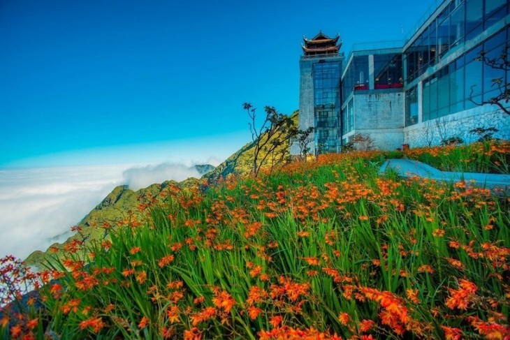Crocosmias de naranja en la estación Fansipan. Foto: Diario de Lao Cai.