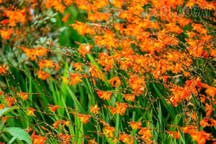 Julio y agosto son la época de floración de las crocosmias, apodadas las "musas" de las montañas por su excepcional resistencia. Foto de : Diario de Lao Cai.
