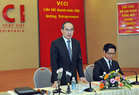 ![]() El presidente del Frente de la Patria de Vietnam, Nguyen Thien Nhan en la conferencia |
