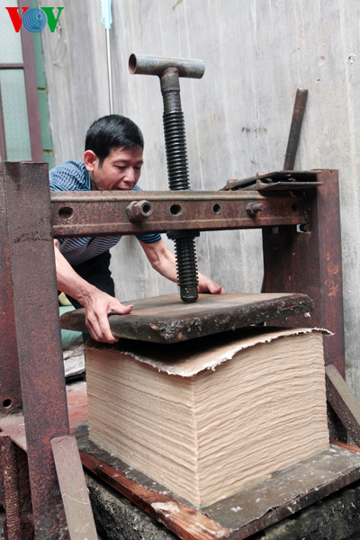 (VOVworld) – Notas tomadas de textos antiguos describen que los vietnamitas sabían cómo hacer el papel desde el siglo III, utilizando alga o madera aromática. Sin embargo, las técnicas de elaboración del papel solo empezaron a avanzar a partir del siglo XV, cuando la civilización feudal indochina alcanzó el punto culminante de su desarrollo. Por aquel momento, se descubrió también la planta del papiro, cuya corteza es un material ideal para elaborar el papel vegetal que se ha utilizado hasta ahora. Ese descubrimiento marcó el nacimiento del oficio tradicional de fabricación de papiro (Giấy Dó) de Vietnam. Actualmente, podemos encontrar a los últimos artesanos de este oficio en las comarcas de Duong O y Dao Xa de la comuna de Phong Khe, en la provincia de Bac Ninh, a unos 31 kilómetros al Este de Hanói, la capital.