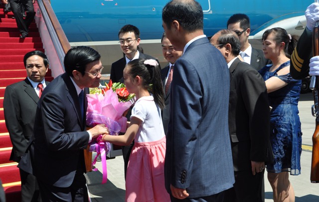 (VOVworld) – El presidente de Vietnam, Truong Tan Sang, al frente de una delegación de alto nivel, llegó hoy a Beijín para reunirse con el secretario general del Partido Comunista de China y presidente, Xi Jinping en una visita de 3 días al país vecino.