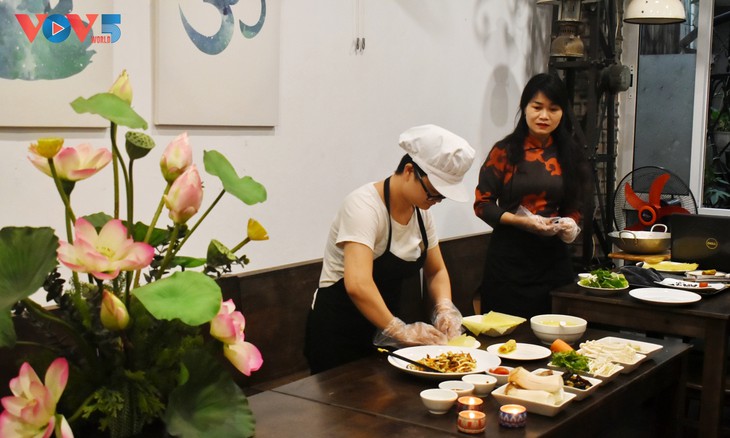 (VOVWORLD) - El vegetarianismo es un régimen alimenticio convertido en una tendencia que se confirma en las múltiples ofertas vegetarianas y veganas que podemos encontrar en empresas y restaurantes vietnamitas, además de en el resto del mundo. Muchos vietnamitas optan por la dieta vegetariana para encontrar el equilibrio entre cuerpo y alma. El restaurante Lang Ta, que significa “nuestro pueblo” en español, ubicado en el número 117 de la calle Hang Bac, en el casco antiguo de Hanói, ofrece una carta tan deliciosa como variada.