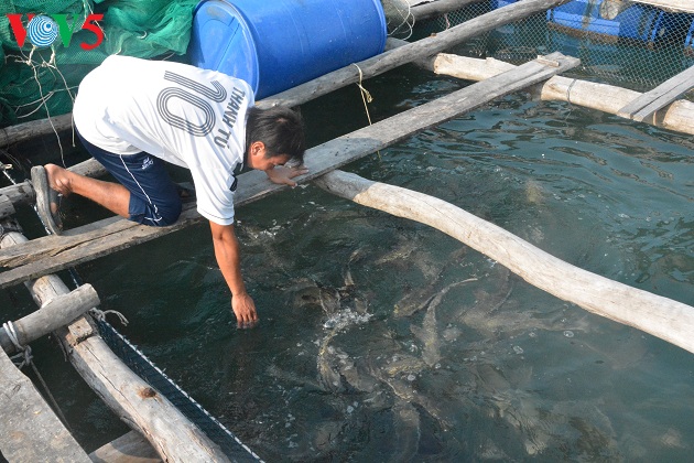 Cría de peces en jaulas en la isla. |