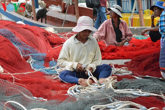 Los pescadores reparan las redes cuando no salen a la mar. |