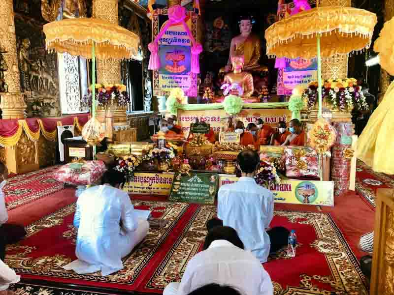 La pagoda Pitu Khosa Rangsay decora el salón principal solemnemente para celebrar la Ceremonia de Ofrenda de la Túnica Kathina. |