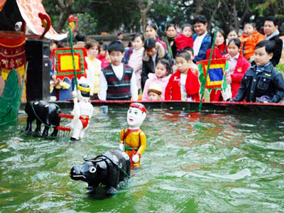 Las marionetas de agua se remontan a la civilización del arroz, y destacan en el tesoro folclórico de Vietnam por su singularidad artística. En esta disciplina, los actores son los muñecos que se mueven sobre el agua y cuentan leyendas ligadas a la historia de la construcción y la defensa del país. También hay historias sencillas de la vida cotidiana rural. Una banda de músicos, efectos de luces y sonidos de fuegos artificiales, y la habilidad de los artistas ofrecen al público presentaciones únicas. Hoang Thi Minh Nguyet, del Museo de Etnología de Vietnam, nos dijo: “El guiñol acuático de Vietnam constituye un espectáculo único en el mundo. Creado hace 10 siglos por los campesinos vietnamitas, este teatro de títeres escenifica actividades diarias de los agricultores, como labranzas de arroz, el cuidado de búfalos, la captura de peces... otras veces evoca leyendas con imágenes míticas como hadas y dragones. El escenario de las marionetas de agua, llamado “thủy đình”, se levanta sobre agua con una estructura con techo similar a la casa comunal de las aldeas tradicionales de los Viet, y los titiriteros manejan los muñecos detrás de una cortina de bambú.”